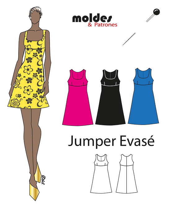 Mini vestido. Jumper tipo evasé en el ruedo. En el archivo de descarga vienen 3 tallas. S, M y L